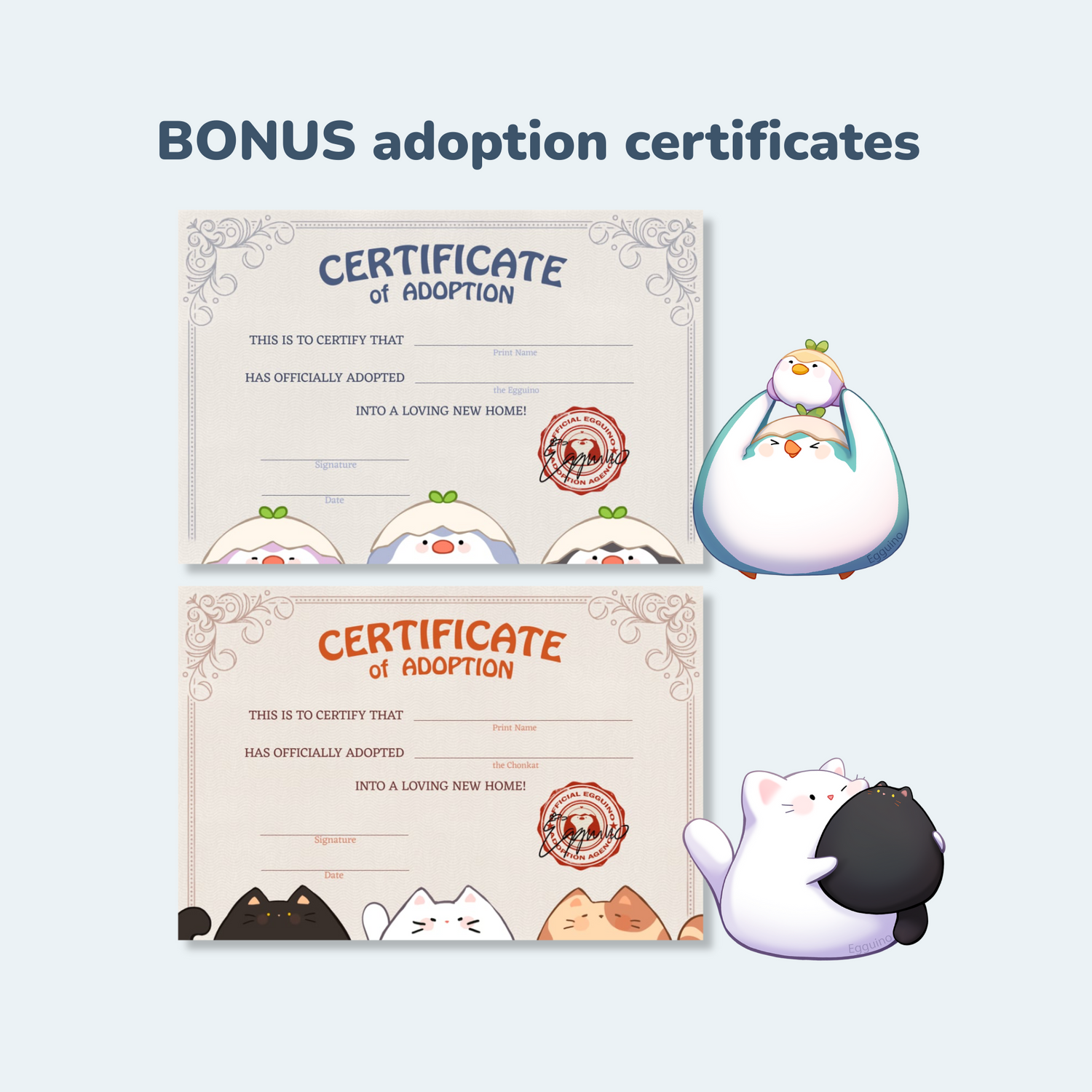 All plushies (excluding keychains) arrive with a Certificate of Adoption to celebrate their new home!
